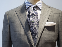 「ちょっと珍しいデザインの、ショートマフラーはいかがでしょう。和光が英国のニットメーカー、コーギー社に別注したものです。布を交差させ、前部でボタン留めするタイプで、カシミヤ100%なので肌触りがよく、保温性も優れています。お値段がお手頃なことも手伝って、4年前から当店のベストセラーになっています」