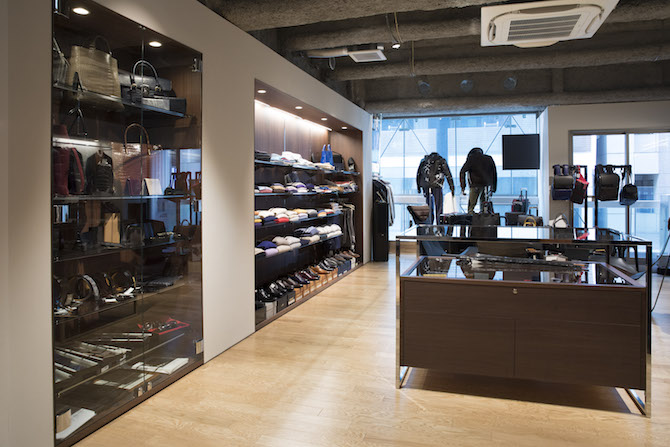 「おすすめなのは、ご覧のような、スーツでもカジュアルでも持てるタイプです。このリュックはレザー製で落ち着いたデザインなので、スーツやジャケットでも違和感なくお持ちになれると思います。また、トートバッグは、日本でも最高レベルと言われる“栃木レザー”の革を使っています。鞣しの工程に非常に時間がかけられていて、素晴らしい質感を持っています。若い人はもちろん、年齢の高い方々にも、こういったタイプが人気なのです」