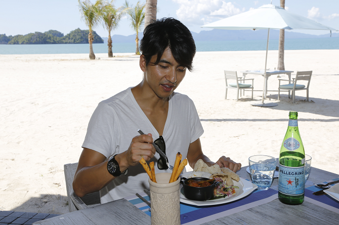 ランチはビーチに隣接したレストラン「Kelapa Grill」でいただくことに。現地のトラディショナルな料理をカジュアルにアレンジしたプレートが楽しい。そしてなんといっても、石窯で焼いたクリスピーピザが絶品。