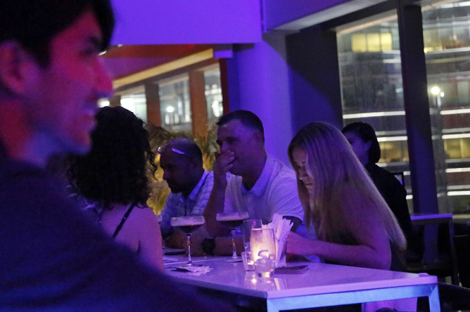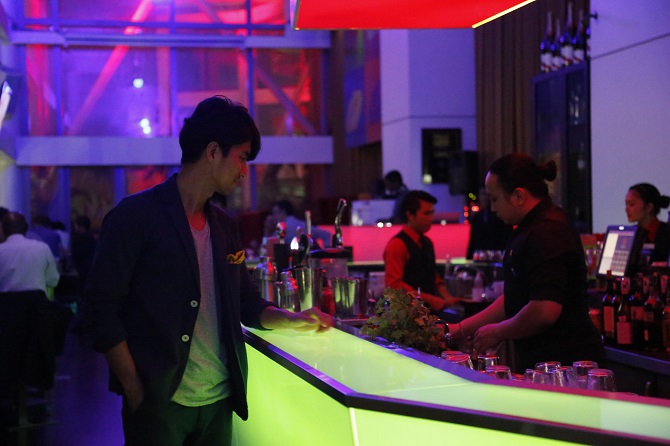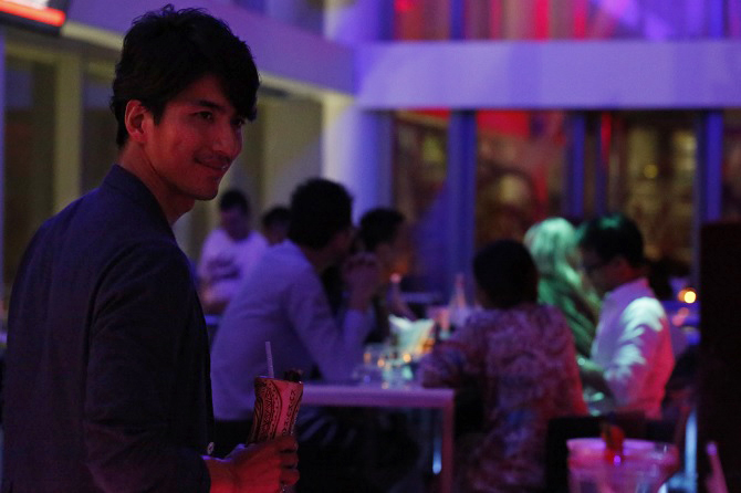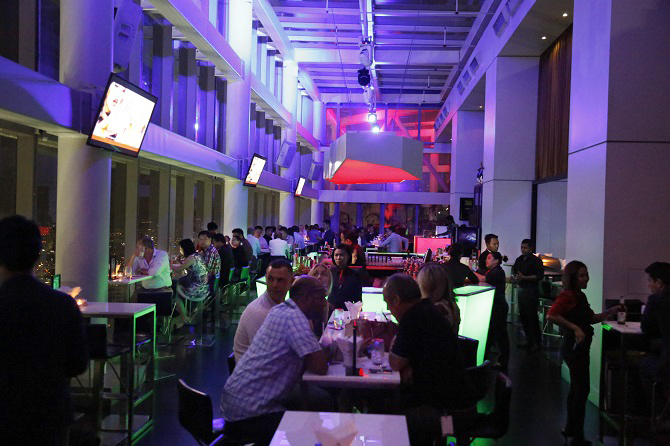 赤と紫にライトアップされたちょっとあやしい店内が、東京の夜を思い出させる。ビルの入り口から数ヶ所のセキュリティを通りたどり着く店内はマレーシアに住む各国のゲストが集うフレンドリーな雰囲気。