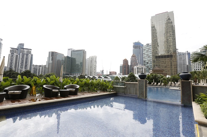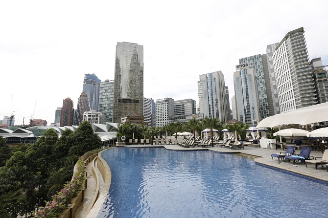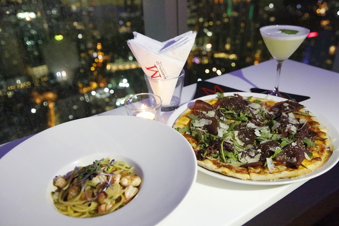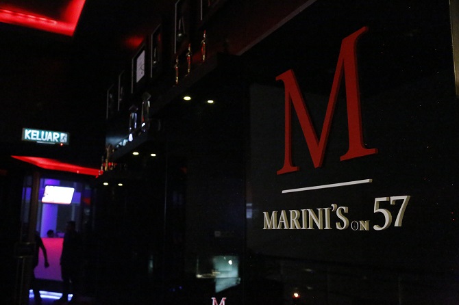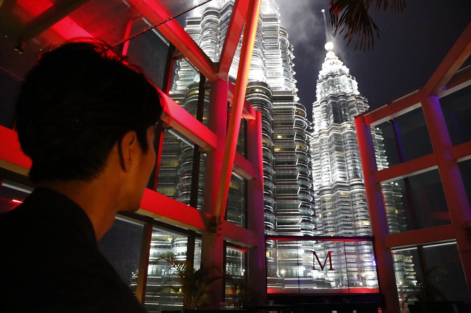 夕食は隣のビルの53階にあるレストラン&バー「MARINI’S on 57」で。ここは、ホテルのすぐ横にそびえ立つ高さ452メートルのペトロナスツインタワーを見渡せる絶好のロケーション。