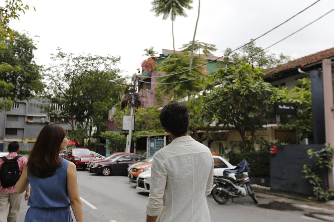 コーヒーブレイクの後は、東京における代官山のようなスポットをリクエスト。そこで案内されたのが「チャンカット ブキビンタン地区」。高層ビルやデパートが立ち並ぶ街の中心から少し離れたエリアだ。