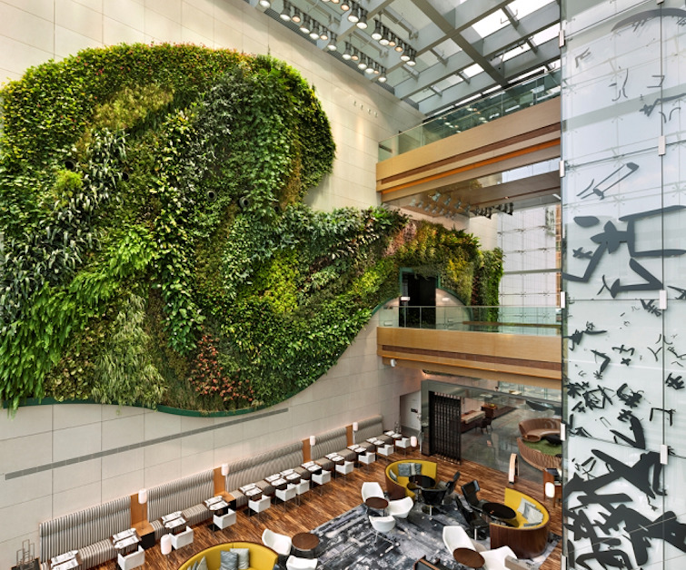 香港理工大学内の名門ホテル学校が運営する、実験的なホテルが「ホテル・アイコン(Hotel ICON)」だ。フランス人アーティスト、パトリック・ブランが、1階〜2階の吹き抜けにデザインしたヴァーティカル・ガーデン(垂直の庭)が印象的なこのホテルは風通しがよく、リフレッシングな印象。テレンス・コンランがデザインを監修している点も注目である。